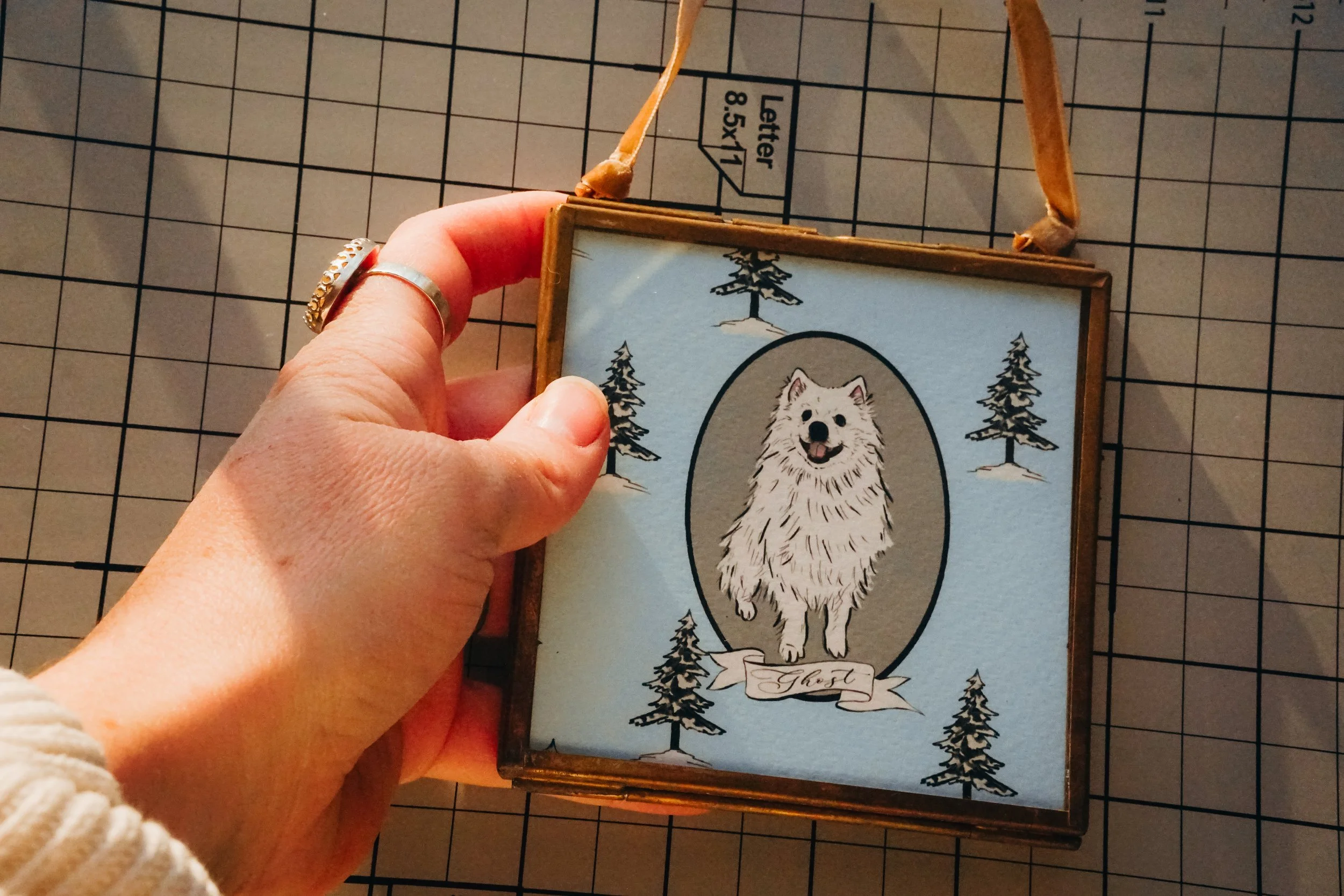 Custom Pet Portrait - Framed Ornament - NEW!