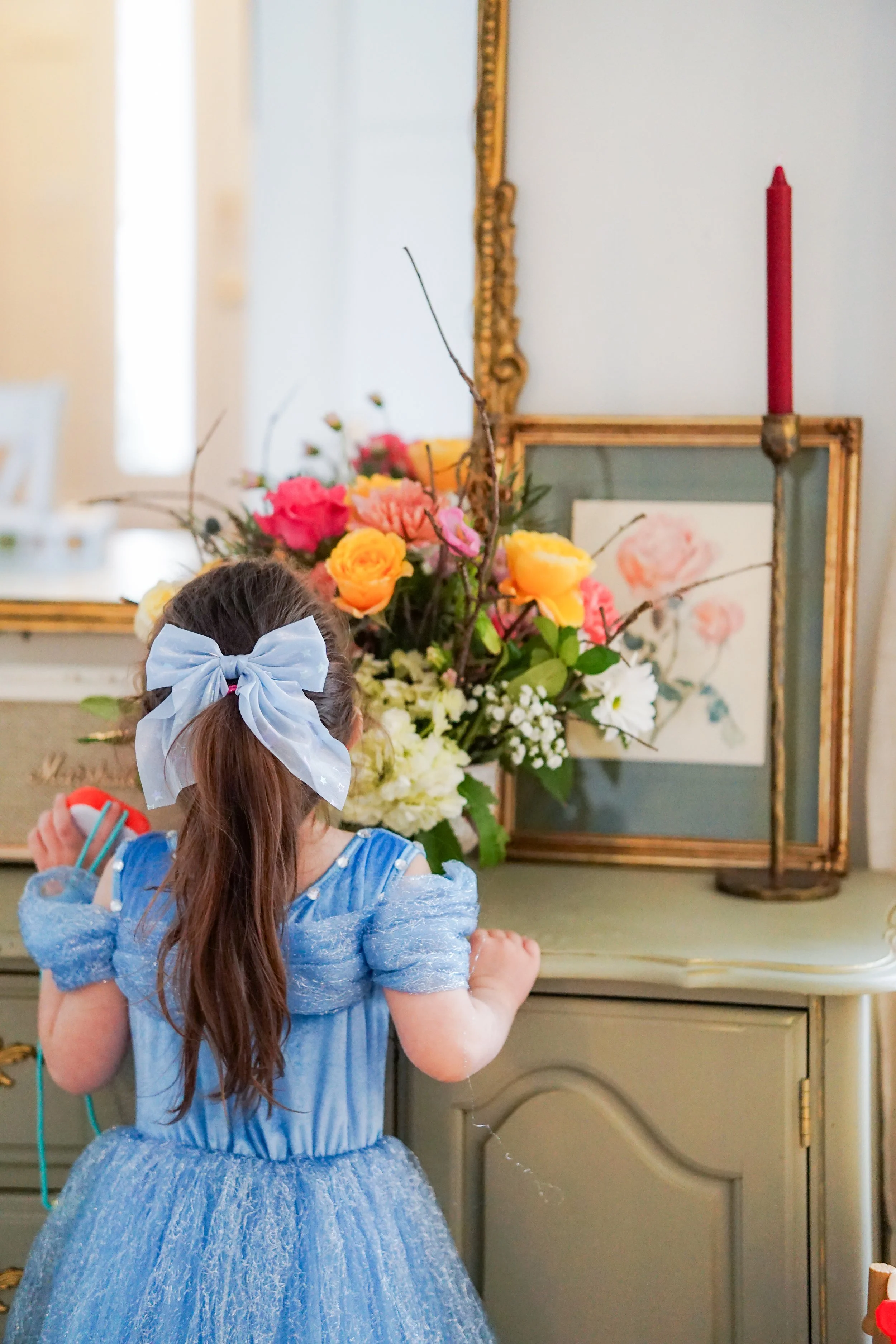 Back to Maureen’s most recent visit. You’d think I’d have the foresight to plan out an in-person floral collaboration. Of course, I did not, and we found ourselves on the last day of her visit, cramming in things we’d been thinking about. Maureen found herself doing crafts, baking desserts with Nellie, sewing repairs on a new princess dress… and then from me, a final and big ask.